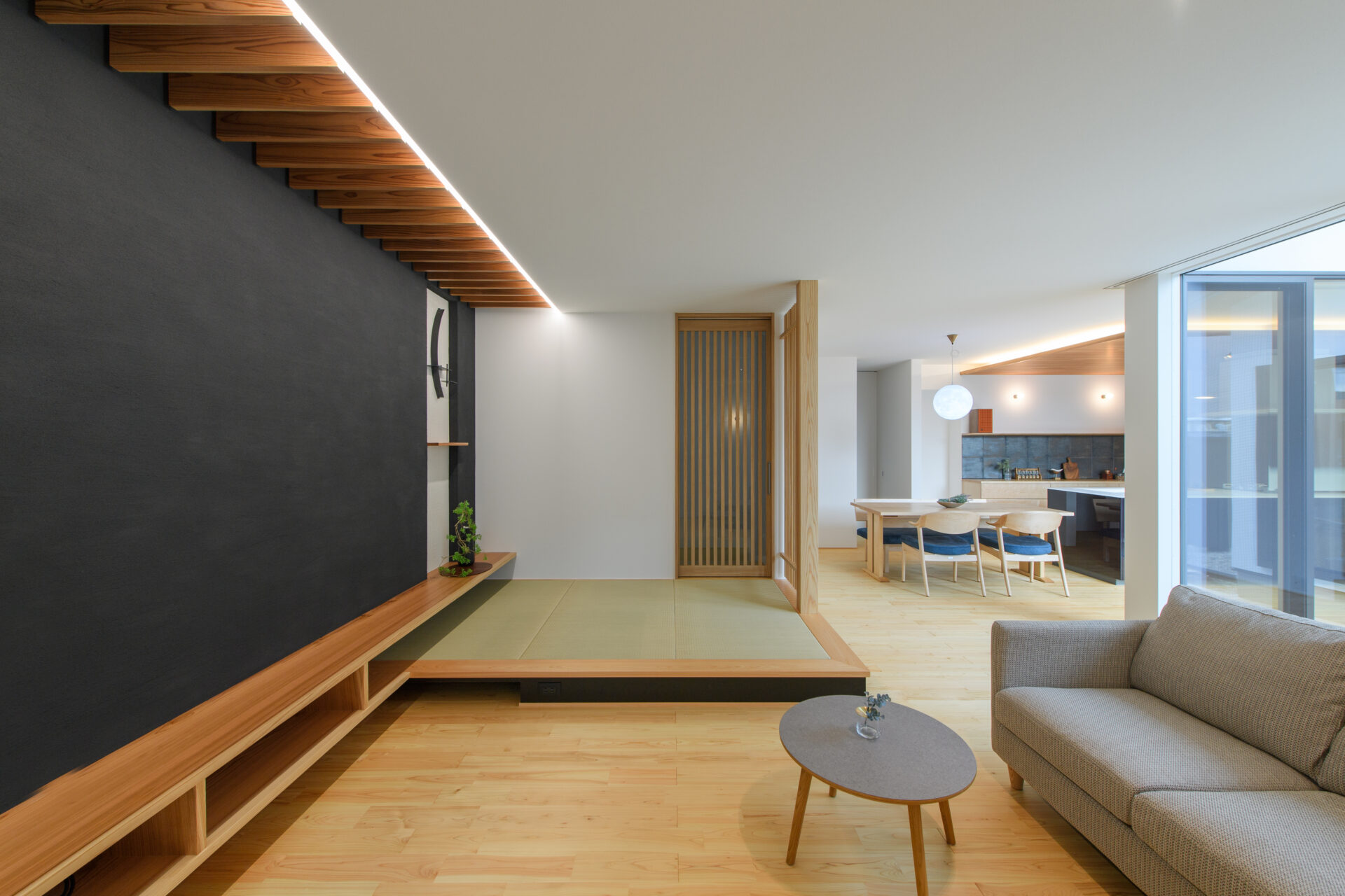 木格子や障子のような建具など、和の要素を取り入れたデザインも魅力のひとつ。