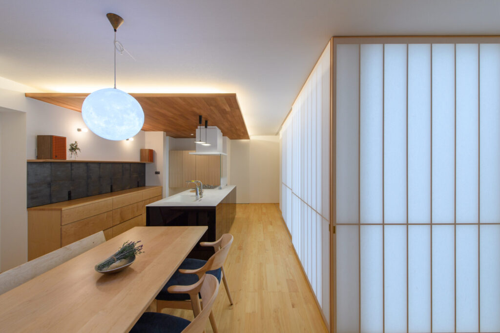 ダイニング・キッチンは開放感のあるレイアウトとし、大きな開口から中庭へと視線が抜ける、心地よい住まいとなりました。